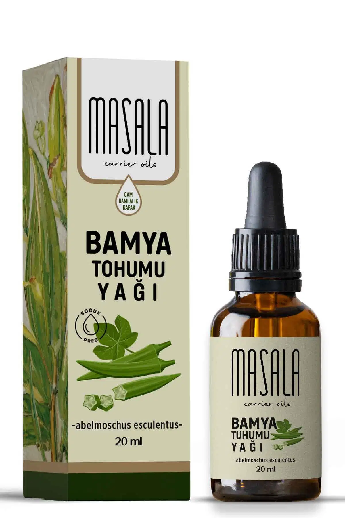 bamya tohumu yağı, okra seed oil, abelmoschus esculentus oil, masala bamya tohumu, soğuk pres bamya tohumu yağı, içilebilir bamya tohumu yağı, doğal sabit yağ, 20 ml bamya tohumu yağı