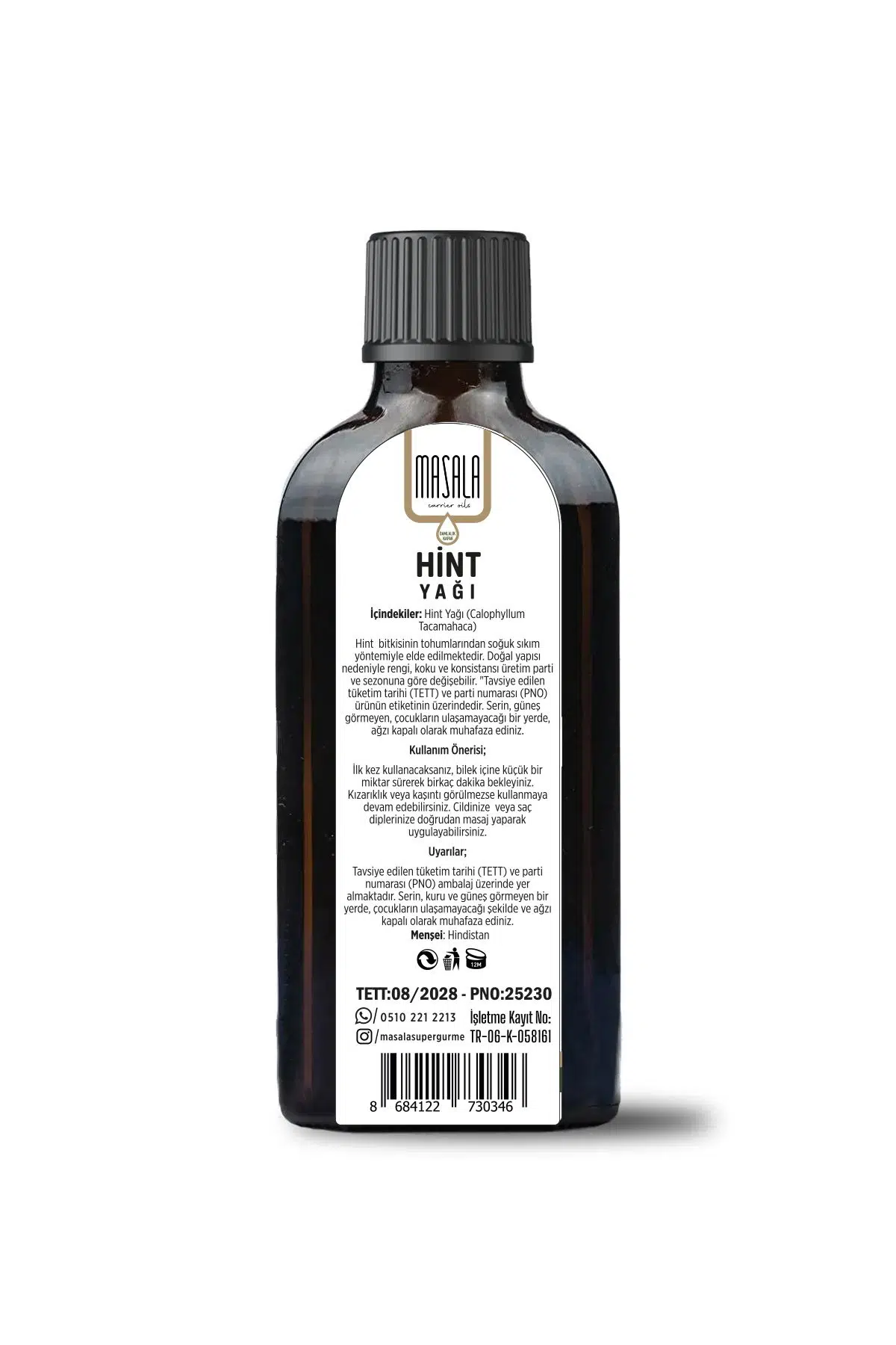 Masala Hint Yağı, Hindistan menşeili tohumlardan soğuk pres yöntemiyle elde edilen, katkısız ve %100 doğal bir sabit yağdır; saç, kaş, kirpik ve genel bakım rutinlerinde tercih edilir.