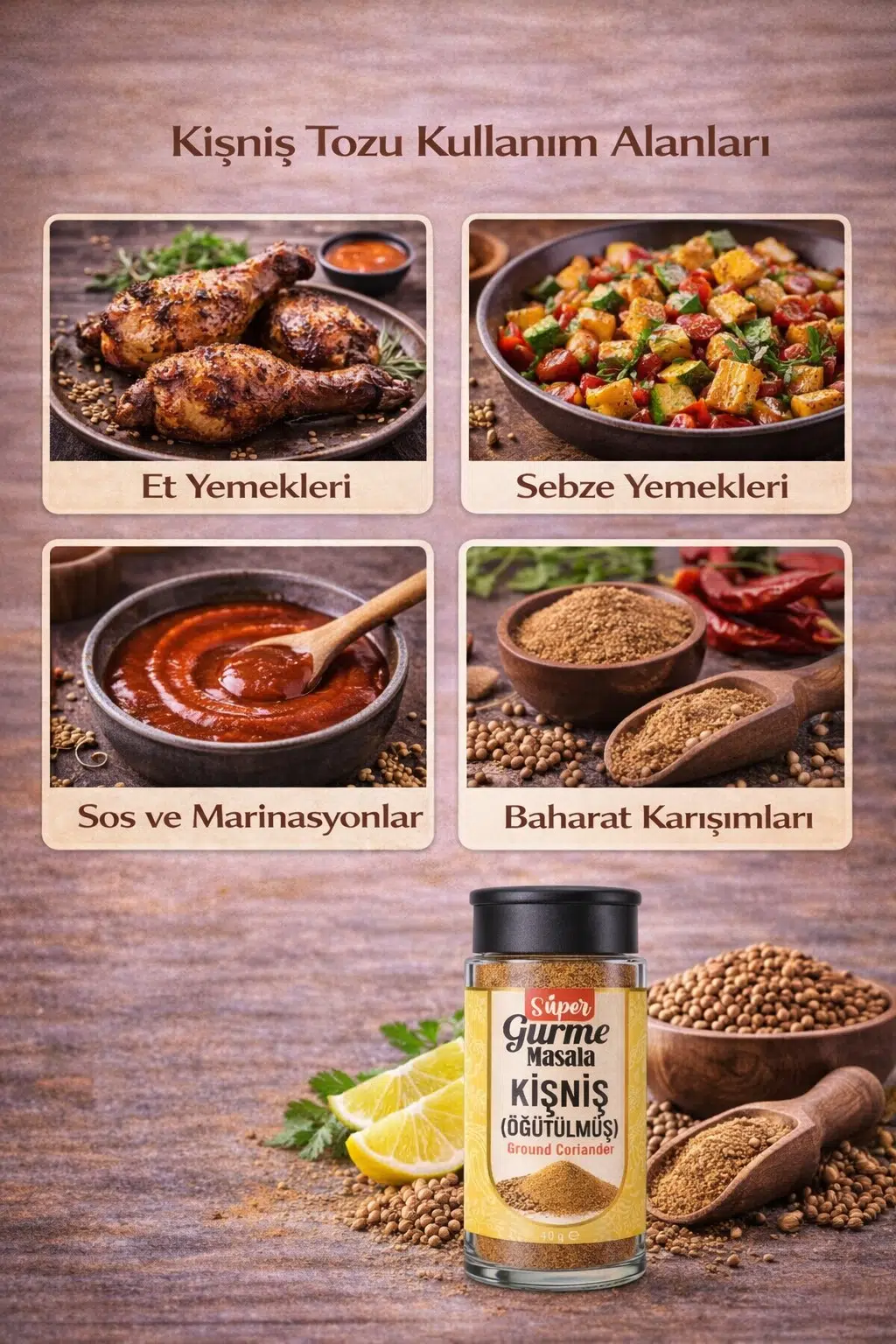 Kişniş tozu özellikle et yemekleri, sebze yemekleri, soslar ve marinasyonlarda kullanılabilir. Ayrıca çorbalara, pilavlara ve baharat karışımlarına farklı bir aroma katmak için tercih edilir.