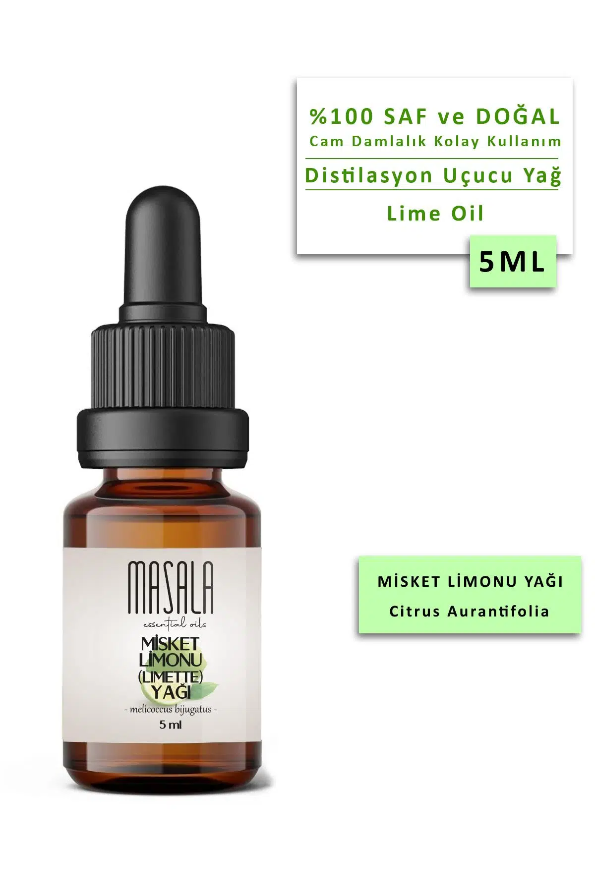 misket limonu yağı, lime oil, lime essential oil, masala misket limonu, narenciye uçucu yağ, aromaterapi yağı, citrus aurantifolia oil, 5 ml uçucu yağ