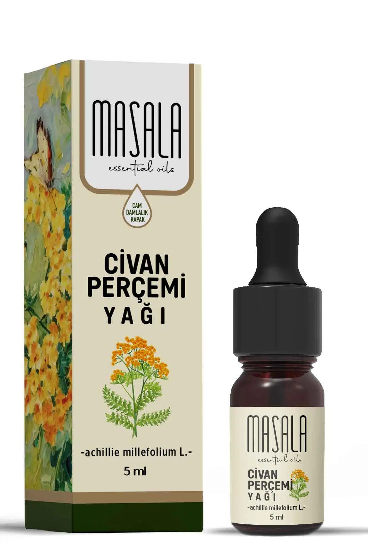 Masala Saf Civan Perçemi Yağı, civan perçemi (Achillea millefolium) bitkisinin su buharı distilasyonu ile elde edilen doğal bir uçucu yağdır. Bitkiye has otsu, hafif baharatımsı ve aromatik kokuyu saf formunda taşır. Katkısız, renklendiricisiz ve koruyucusuz yapısıyla aromaterapi uygulamalarında rahatlıkla kullanılabilir.