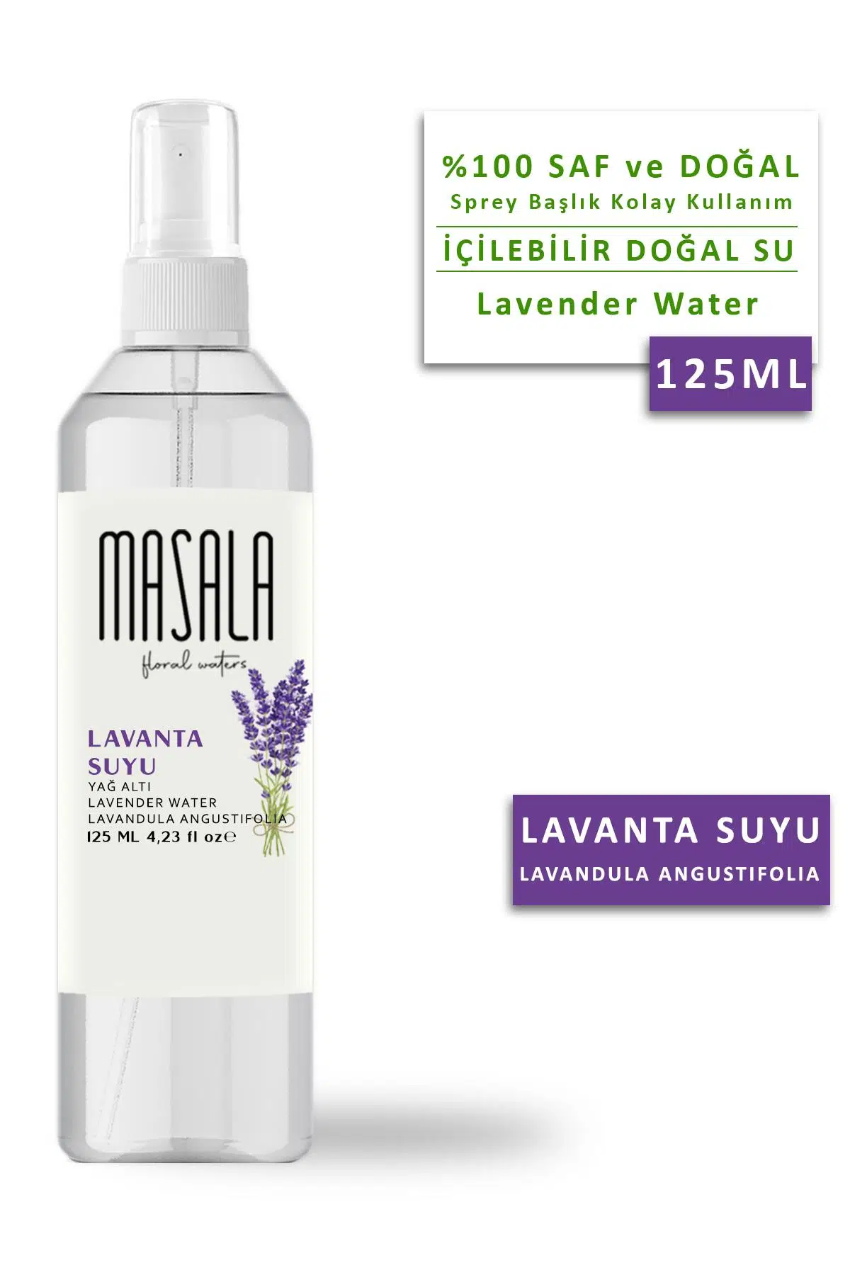 lavanta suyu, lavender water, lavanta hidrosol, doğal tonik, yağlı hidrosol, masala lavanta suyu, floral water, 125 ml çiçek suyu