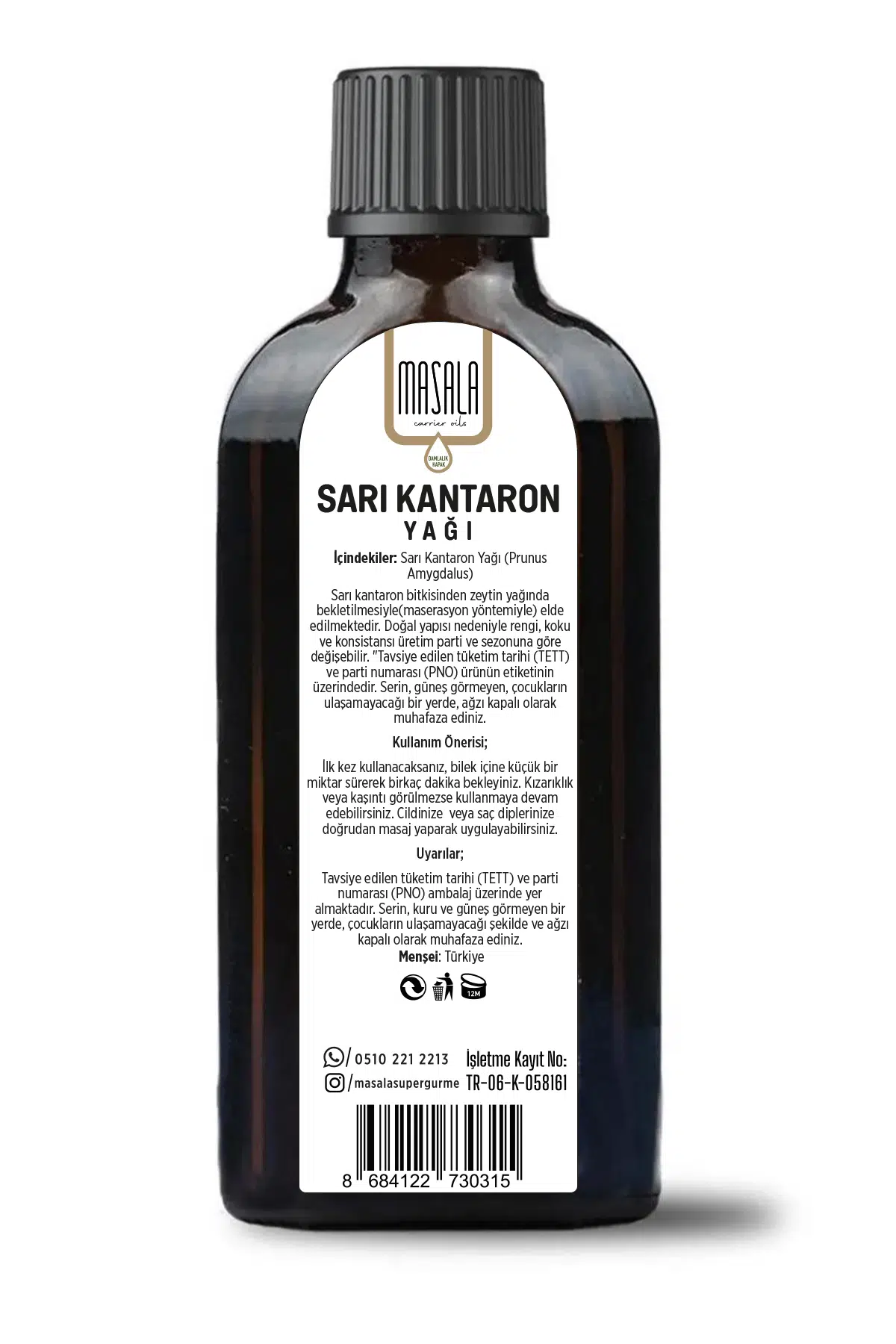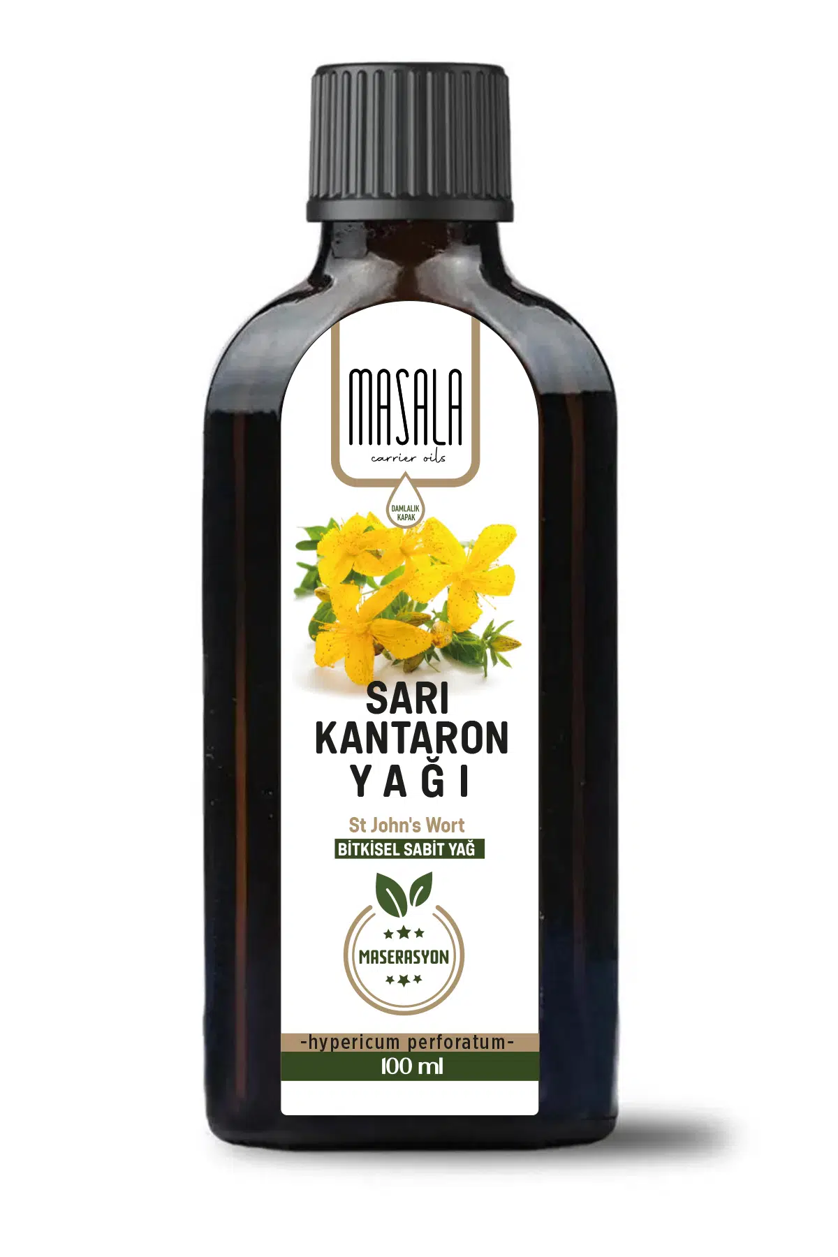 Masala Sarı Kantaron Yağı, sarı kantaron bitkisinin (Hypericum perforatum) çiçekli kısımlarının doğal zeytinyağı içinde geleneksel yöntemle masere edilmesiyle elde edilen %100 doğal bir bitkisel yağdır; kendine özgü kırmızımsı rengi ve yoğun bitkisel aromasıyla harici bakım rutinlerinde tercih edilir. Masala Sarı Kantaron Yağı, soğuk sıkım zeytinyağı bazında uzun süreli maserasyon yöntemiyle hazırlanır ve bu sayede bitkinin doğal bileşenleri yağ fazına aktarılır. Ürün katkı maddesi, renklendirici, koruyucu ve heksan içermez. Geleneksel bitkisel yağ formunda hazırlanmış olup yalnızca harici kullanım içindir. Amber cam 100 ml şişede sunulur ve Masala tarafından hijyenik koşullarda dolum yapılır.