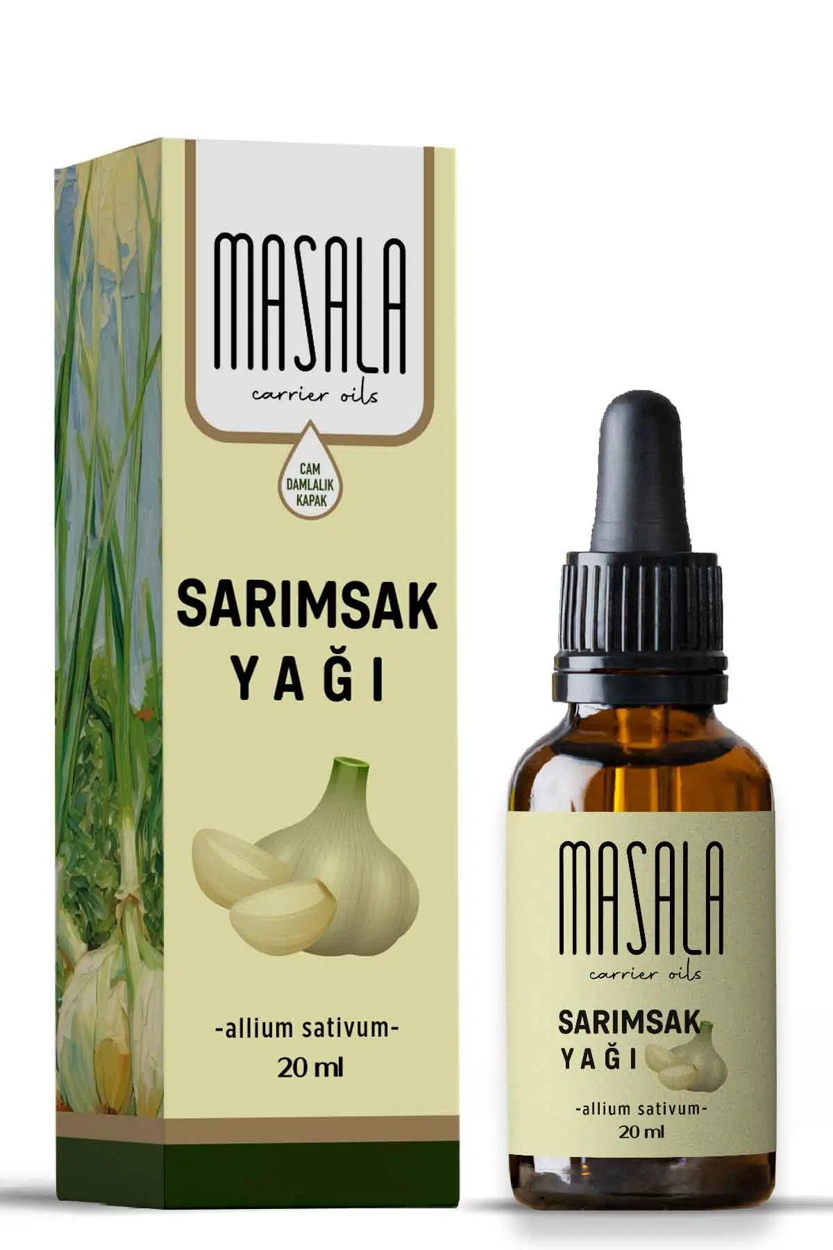 Masala Sarımsak Yağı, sarımsak dişlerinin doğal zeytinyağı içinde geleneksel yöntemle masere edilmesiyle elde edilen kendine özgü aromaya sahip %100 doğal bir bitkisel yağdır; yoğun karakteristik kokusuyla bitkisel yağ karışımlarında tercih edilir. Masala Sarımsak Yağı, sarımsak (Allium sativum) dişlerinin soğuk sıkım zeytinyağı bazında belirli bir süre bekletilmesiyle hazırlanan masere bir yağdır ve bu süreçte sarımsağın doğal bileşenleri yağ fazına aktarılır. Ürün katkı maddesi, renklendirici, koruyucu ve heksan içermez. Geleneksel bitkisel yağ formunda hazırlanmış olup harici kullanım için uygundur. Amber cam 20 ml şişede sunulur ve Masala tarafından hijyenik koşullarda dolum yapılır.