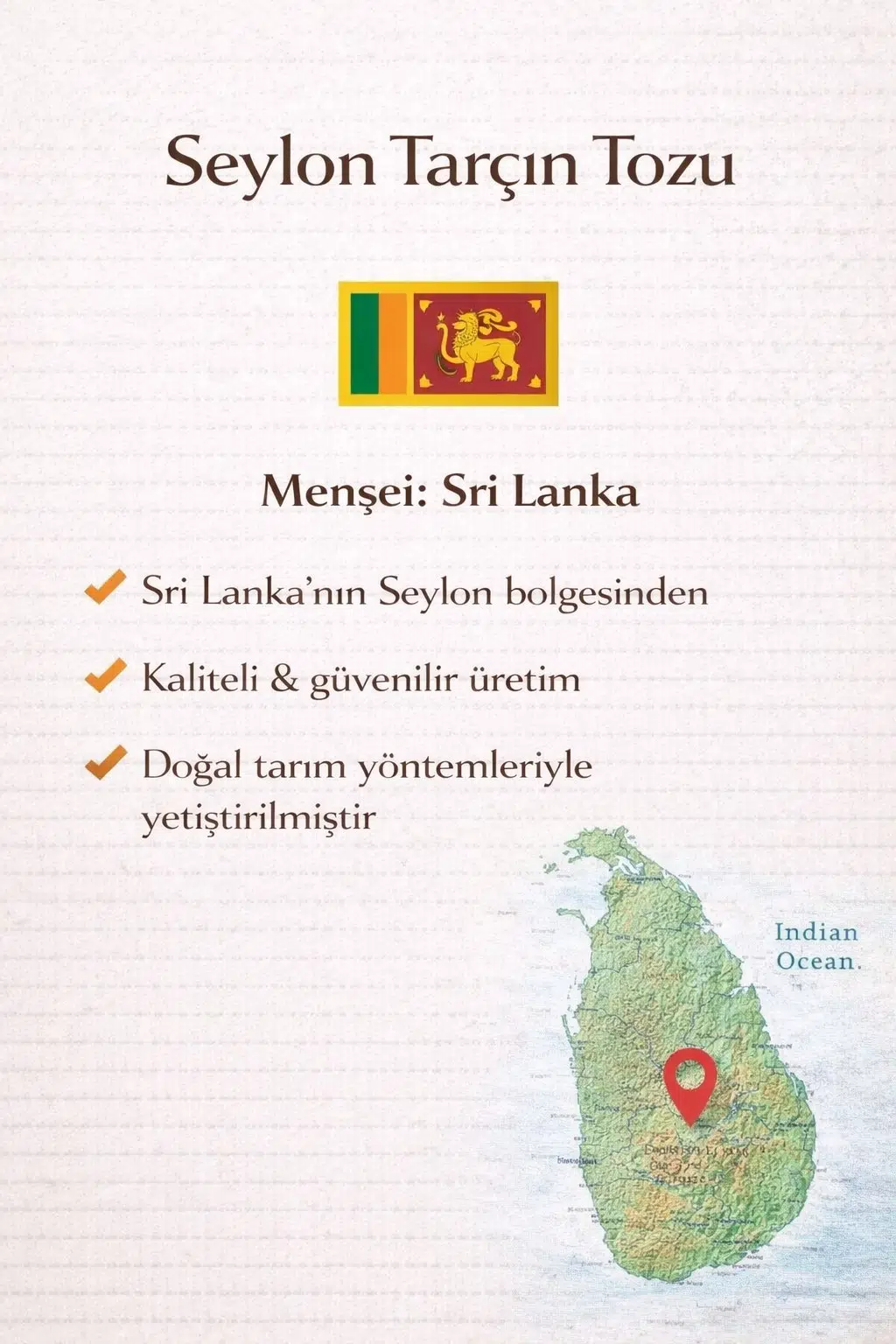 | Etiketler | Seylon Tarçın Tozu 50 gr. Ceylon Cinnamon Powder (Menşei; Sri Lanka) |