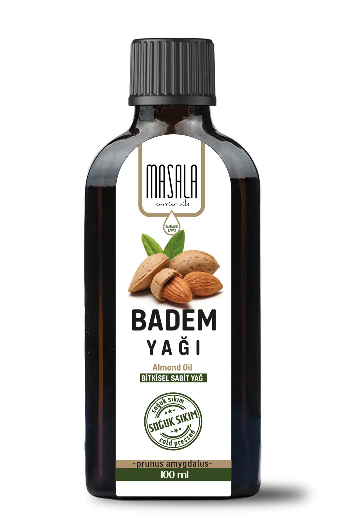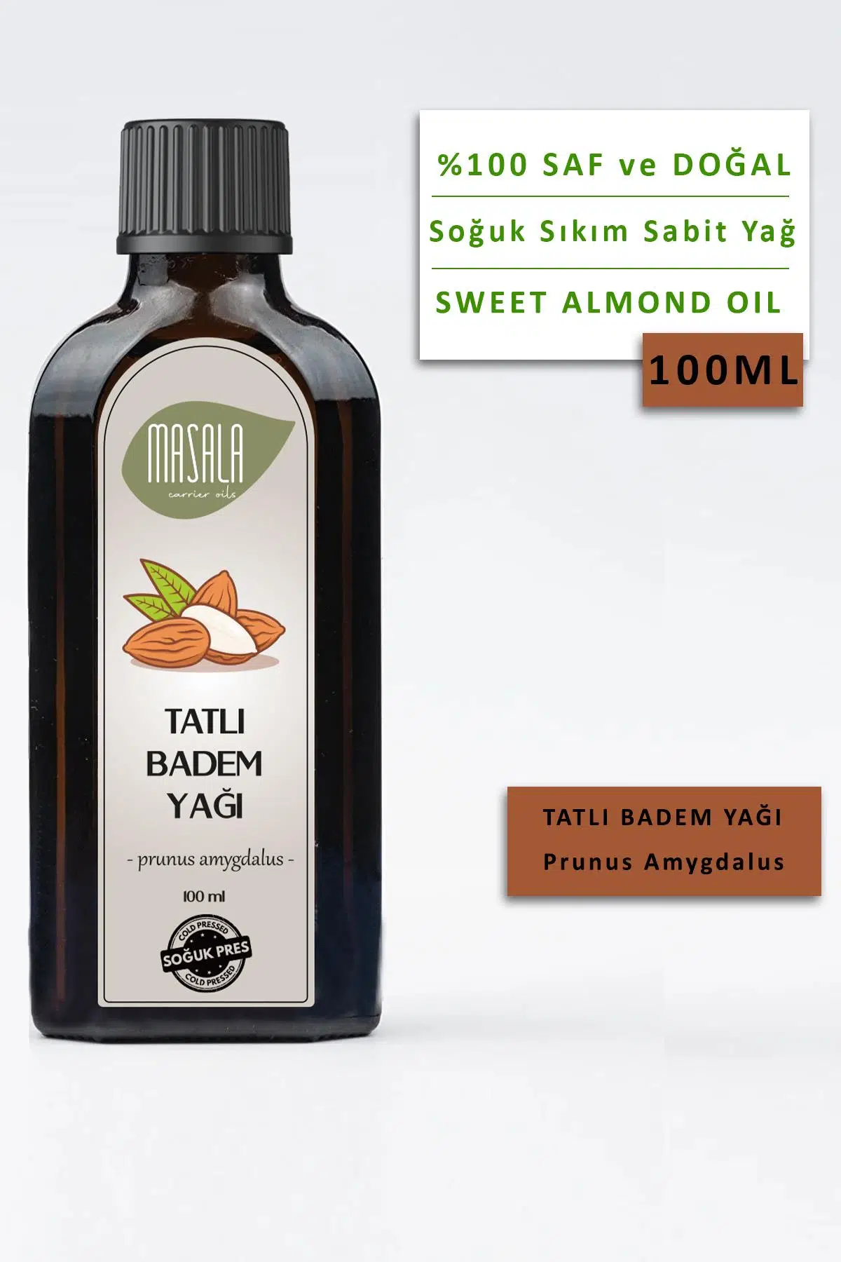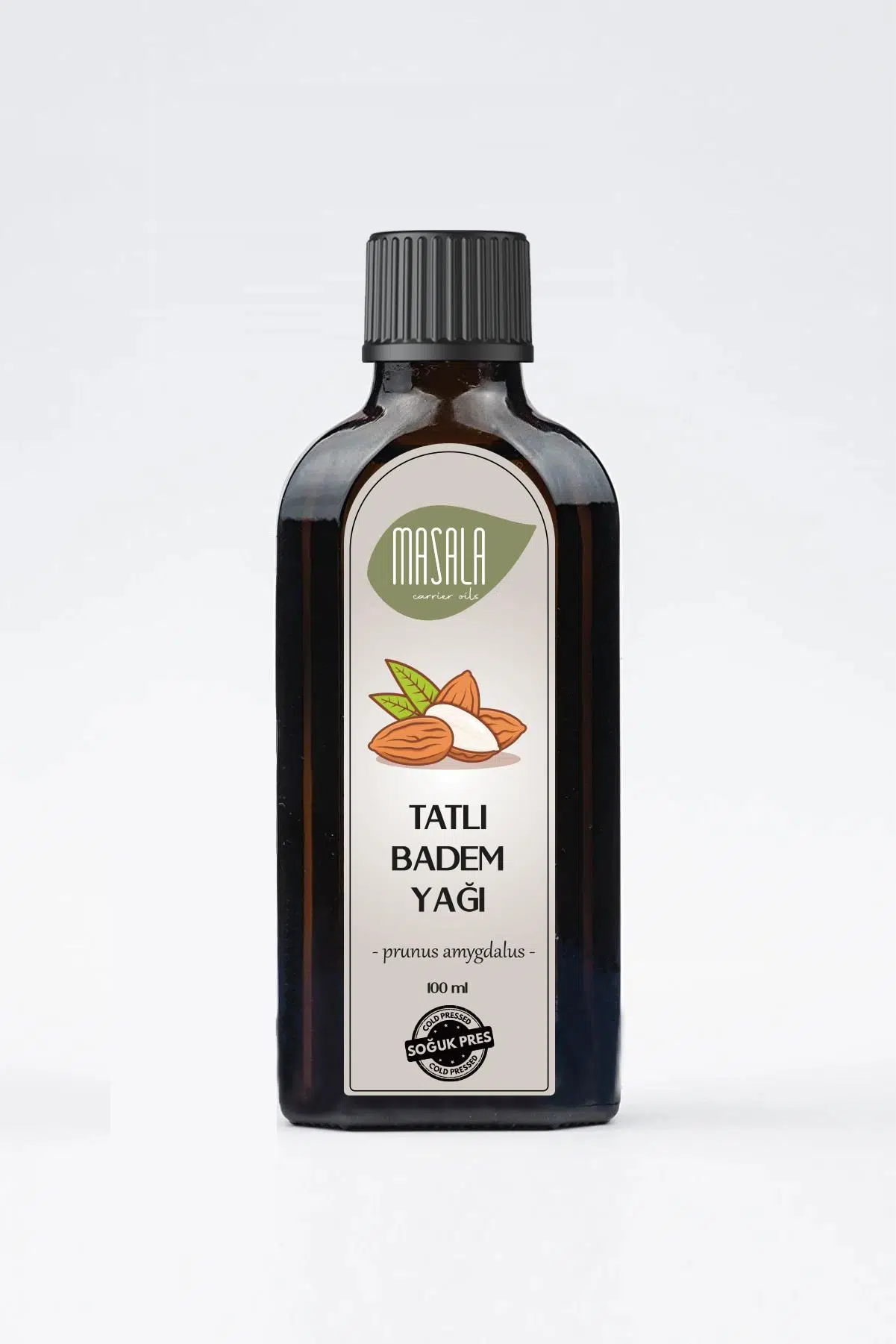 tatlı badem yağı, sweet almond oil, prunus amygdalus dulcis oil, masala tatlı badem, soğuk pres badem yağı, içilebilir badem yağı, doğal sabit yağ, 100 ml tatlı badem yağı