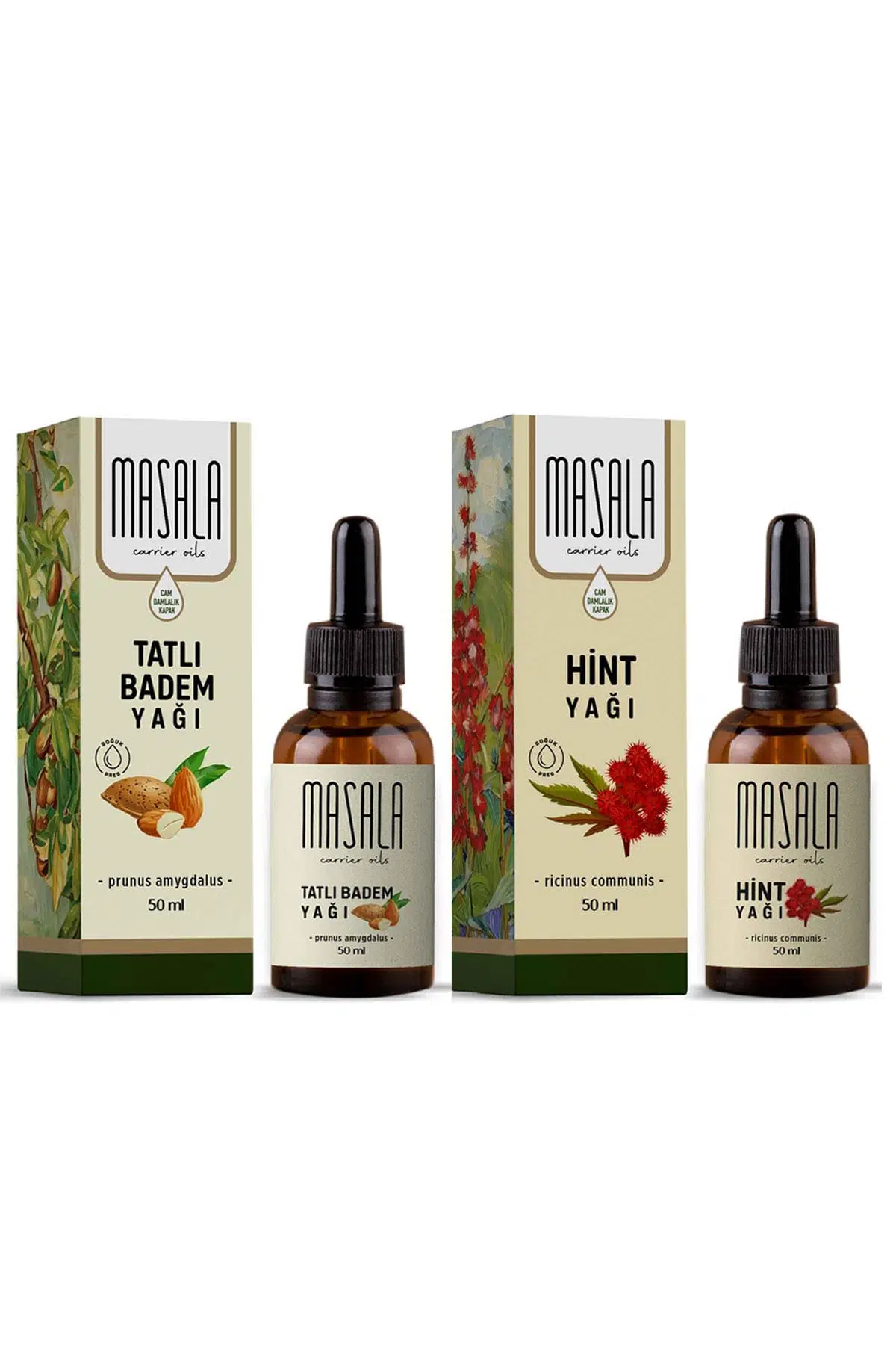Masala Tatlı Badem Yağı & Hint Yağı Seti, bitkisel sabit yağlardan oluşan pratik ve dengeli bir kombinasyondur. Set içerisinde yer alan tatlı badem yağı ve hint yağı, farklı kıvam ve yapılarıyla bakım rutinlerinde sıkça tercih edilen doğal yağlar arasında yer alır.