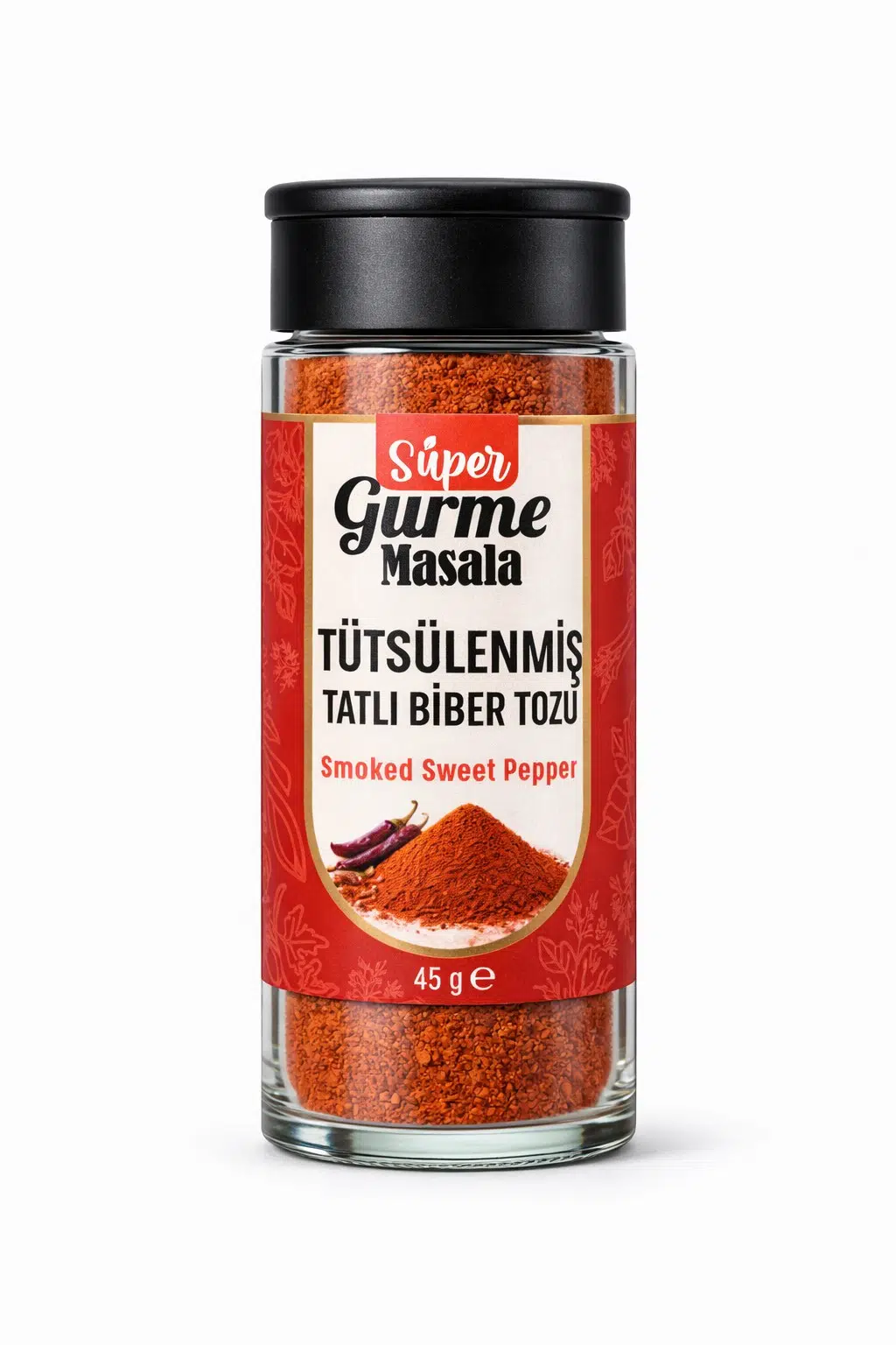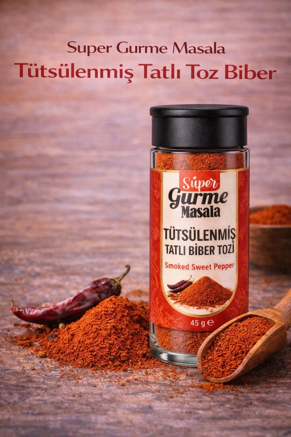 Super Gurme Masala Tütsülenmiş Tatlı Toz Biber, kendine özgü tütsülenmiş aroması ve dengeli tatlı biber karakteriyle mutfaklarda farklı tariflere karakter kazandıran bir baharattır. Özenle öğütülmüş formu sayesinde tariflere kolayca eklenir ve yemek içerisinde homojen şekilde dağılır.